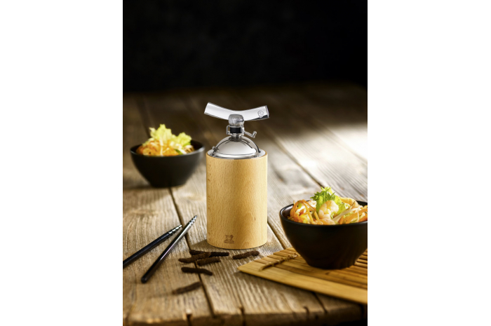 Le moulin manuel en bois Isen poivres longs de Peugeot a été spécialement conçu pour moudre les poivres longs et les gros grains de poivres et les épices séchées de gros gabarit comme la cardamome, la badiane, le clou de girofle, le cumin, le fenouil, la coriandre ou encore la fève tonka. Chaque détail de ce moulin a été soigneusement pensé, la trémie que l’on ouvre délicatement, le réglage de mouture précis et efficace avec lequel vous pourrez moudre votre poivre finement ou très grossièrement.
