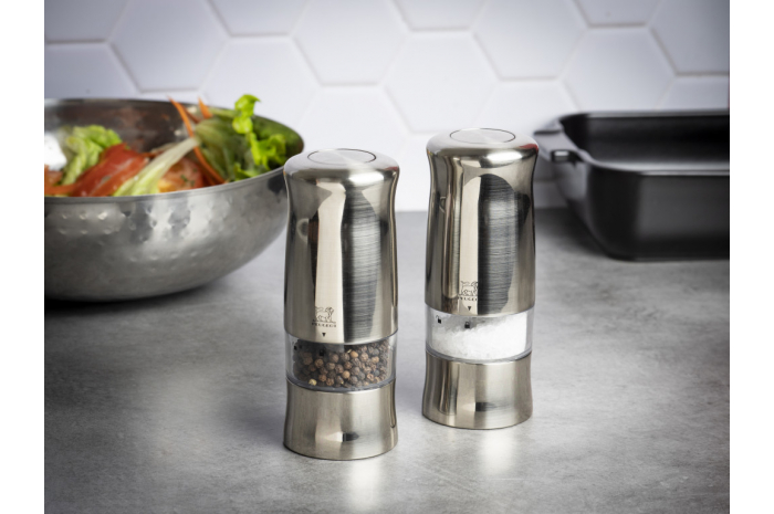 Donnez une touche contemporaine à votre table et votre cuisine avec le moulin à sel électrique Zeli de Peugeot et son design effet inox brossé mat.