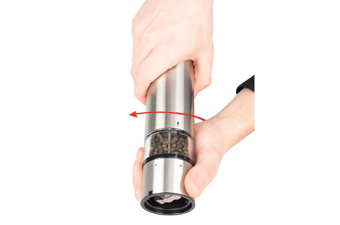 Son design high-tech en inox et acryl, fera sensation sur la table et dans la cuisine. Véritable innovation, il suffit de toucher simultanément le corps et la tête du moulin pour l’activer. Le moulin à poivre électrique Elis Sense délivre alors la juste dose de poivre tout en s’éclairant grâce à son témoin lumineux qui facilite le contrôle du débit.