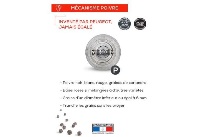 Tout en transparence pour voir les grains de poivre , le Nancy de Peugeot est irrésistible et toujours à portée de main en cuisine et sous le feux des regards à table. Déclinable en 3 tailles, vous trouverez votre bonheur.