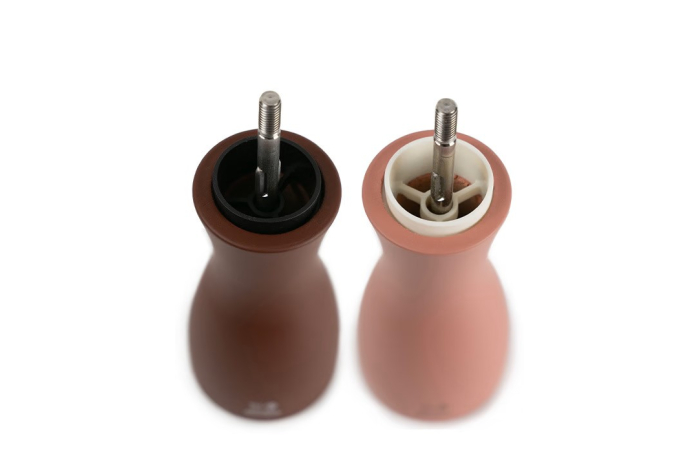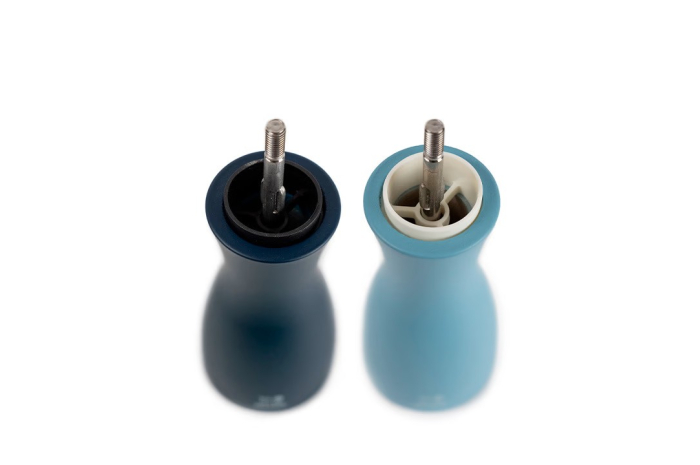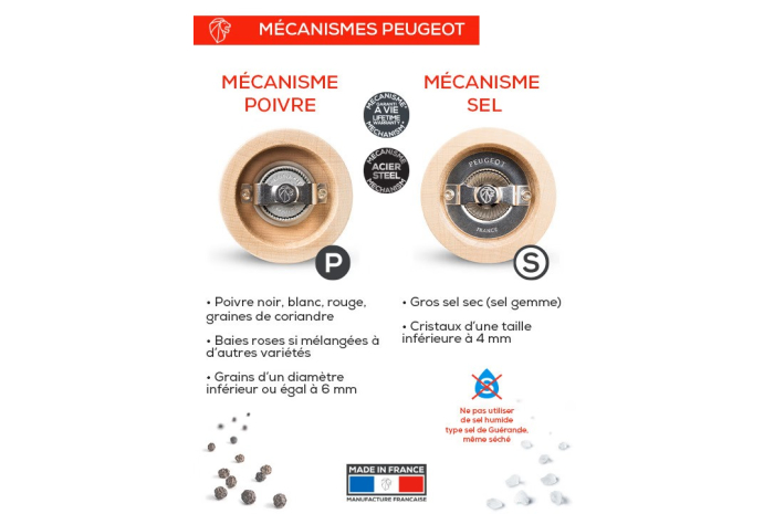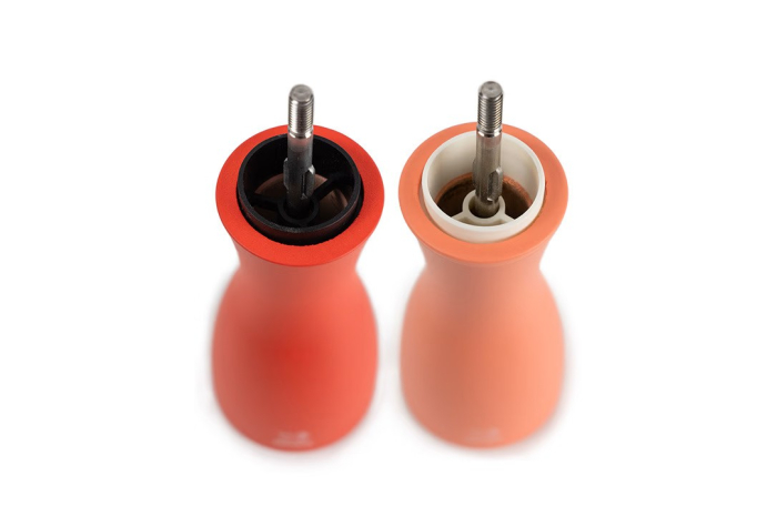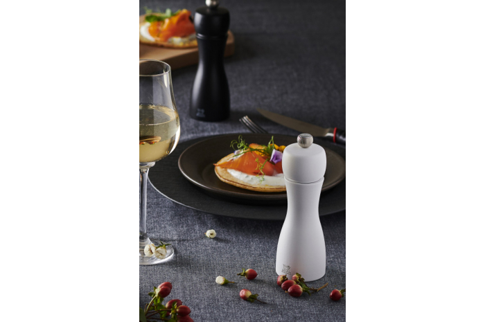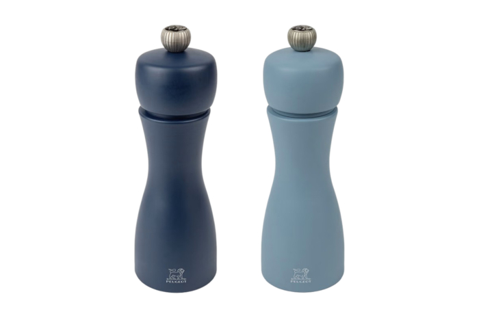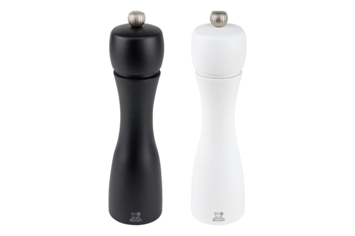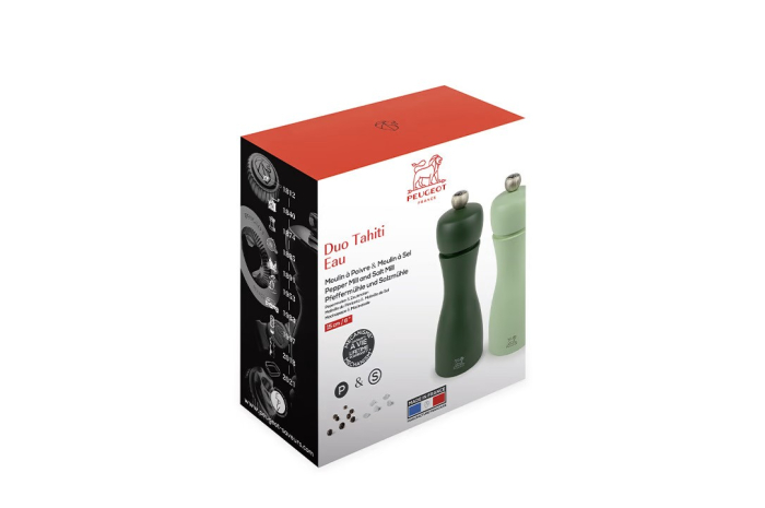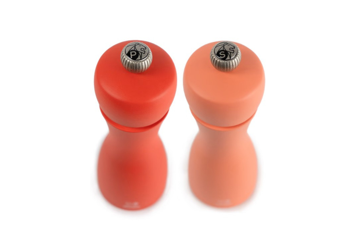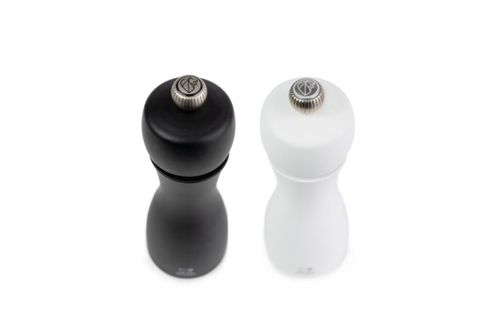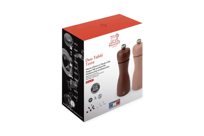 Ce duo de moulins à poivre et à sel Tahiti, tout en contraste, est reconnaissable à ses belles courbes élancées. Tout de bois vêtu, ce duo de moulins de 15 ou 20cm abrite le performant mécanisme Peugeot garanti sans limite de durée. Le bouton qui orne les moulins permet de régler la taille de la mouture selon vos envies : plus il est serré, plus la mouture est fine. Les teintes classiques ou plus flamboyantes s'accordent parfaitement sur vos plus belles tables contemporaines.