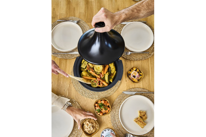 Le couvercle en céramique à une forme étudiée pour sublimer les saveurs. En effet, sa forme unique favorise la circulation des jus évaporés qui s’élèvent, se condensent sur les parois puis retombent sur les ingrédients, pour des plats tendres et riches en saveurs. Le couvercle permet de cuire les ingrédients à l’étouffée afin de préserver les nutriments.