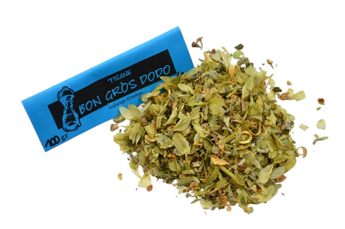 COMPOSITION : Houblon, oranger doux pétales, sauge, passiflore, aubépine feuille et fleur, tilleul, menthe poivrée, badiane.