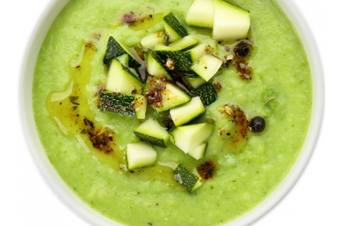 - Mettez les courgettes, les oignons dans une casserole et couvrez d'eau avec les cubes de bouillon.